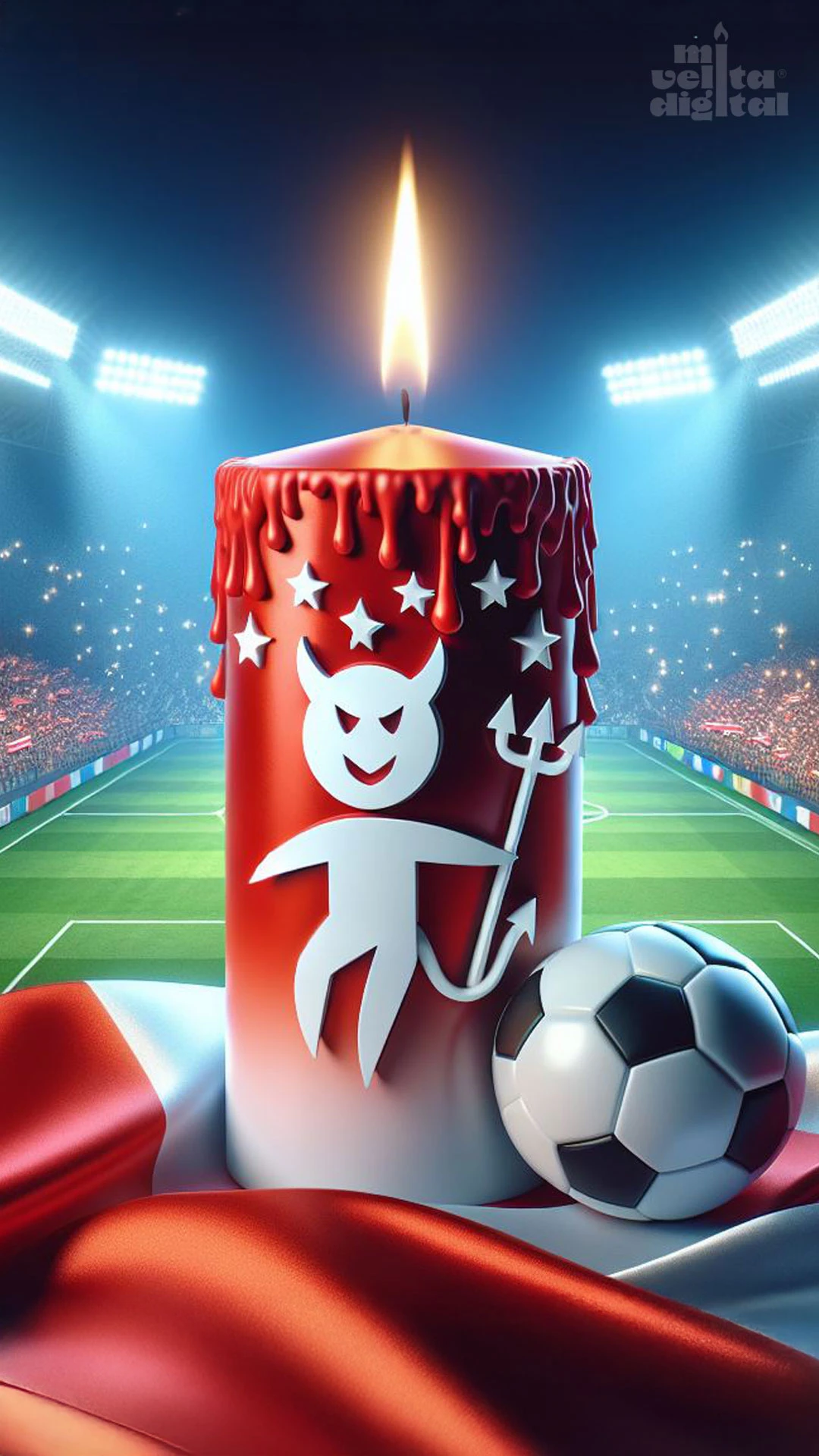 Enciende esta velita para que el fuego de los Diablos Rojos arda con más fuerza que nunca. Demuestra que ser hincha de La Mechita es más que una afición, ¡son cosas del corazón! El equipo escarlata merece seguir haciendo historia y con tu apoyo, a través de esta velita, de seguro continuará acumulando triunfos y llenando de estrellas su escudo. ¡Que viva el único pentacampeón de Colombia!